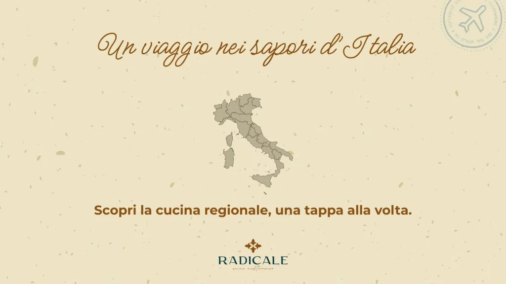 Radicale presenta Un viaggio nei sapori d’Italia, il nuovo evento mensile dedicato alla scoperta delle tradizioni culinarie regionali italiane. Ogni serata è un percorso gastronomico esclusivo che racconta la cultura di una regione attraverso ingredienti tipici, ricette tradizionali e vini del territorio.